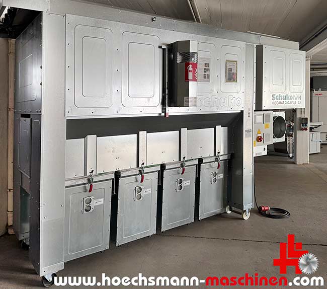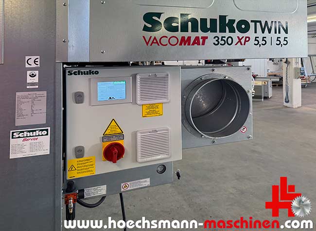SCHUKO Absauganlage Vacomat 350 XP Twin, Baujahr 2022, CE Zeichen, schallgedämpft, „Silent und SaveEnergy“, mit Löschautomatik, 2 Ventilatoren, Drehzahl über Inverter frequenzgesteuert, Jet Abreinigung, Filterkategorie M und H3, Filterfläche 50 m2, Volumenstrom 6.927 m3/h, Unterdruck 3.365 Pa, 4 Auffangbehälter, Motor 2 x 5,5 kW, Gesamtanschluss 11 kW, SPS TouchScreen Steuerung, Ansaugstutzen 350 mm, Gewicht 1.160 kg, Stellmaße LxBxH 3.900 x 1.620 x 2.660 mm, Maschine wie neu, Steuerung zeigt 0 Betriebsstunden, funktionsgeprüft und vorführbereit, derzeitiger Neupreis über 30.000 € netto ab Werk